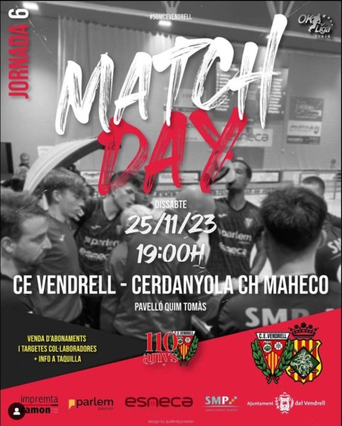 CEV 06 Desembre 2023 JORNADA 6 - OK LLIGA PLATA No et perdis el partit de lliga que tindrà llòc al pavelló Quim Tomàs. Rebem la visita del @cerdanyola_ch que és l'actual líder de l'Ok Plata Nord. DISSABTE 25 DE NOVEMBRE A LES 19:00H CE VENDRELL - CERDANYOLA CH MAHECO JORNADA 6 - OK LLIGA PLATA Play Slideshow Pause Slideshow Tags: Temporada 23/24 Article anterior: JORNADA 8 - OK LLIGA PLATA Anterior Article següent: OK 3x3 CE VENDRELL - 29 i 30 de Desembre Següent